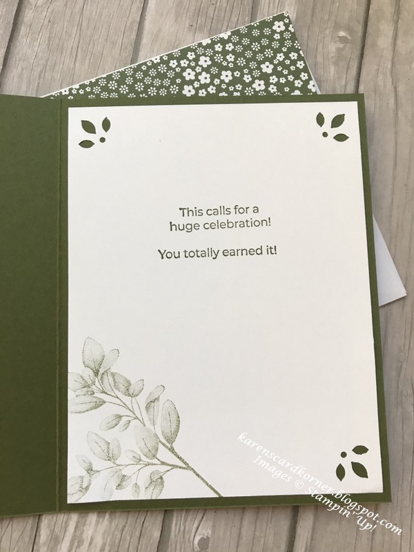 I used a leaf from Forever Fern, sentiments from Many Mates and the Detailed Trio Punch to finish the inside.