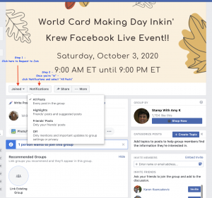 When you get there - click on "Join Group" at the top. One of them will accept your request and you'll be ready to go! Once that happens, you'll ALSO want to set your Notifications to "All" so that you get a notice for all the posts that are coming! I am not a participant but I will be watching!