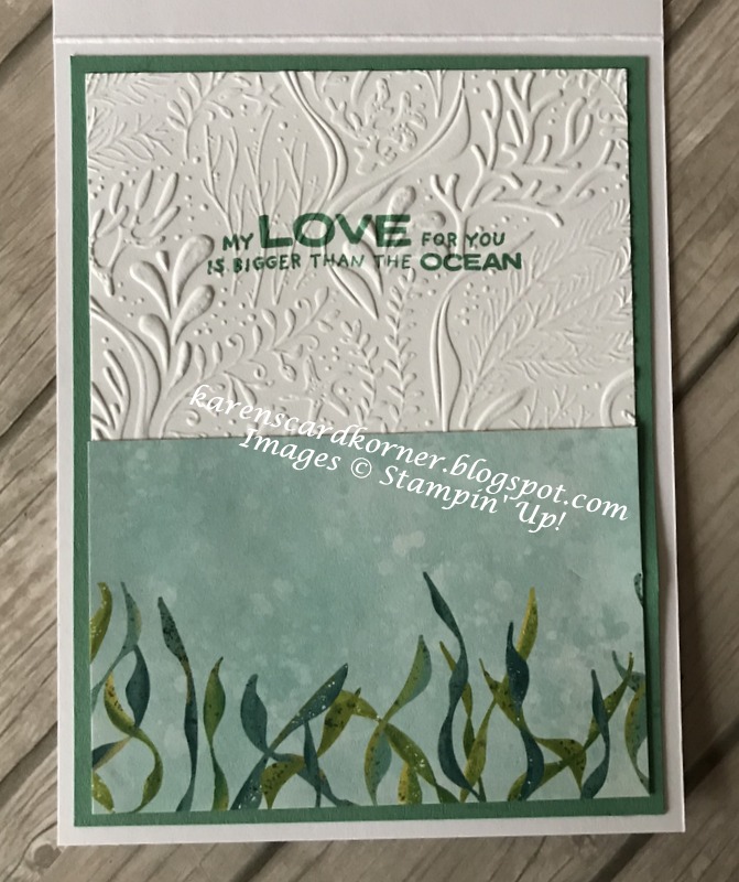 DeleteI love your oceanic love card, Karen! Great paper and great design, both outside and inside with lots of texture!! Thank you so much for sharing with everyone at NBUS! Keep well! Hugs, Darnell