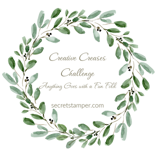 Welcome to our Anything Goes With a Fun Fold Challenge. If you haven't played at Creative Creases Challenge before, what are you waiting for? Hop on over to Challenge #101. We'd love to see your fun fold creation. Here's a snapshot of mine...